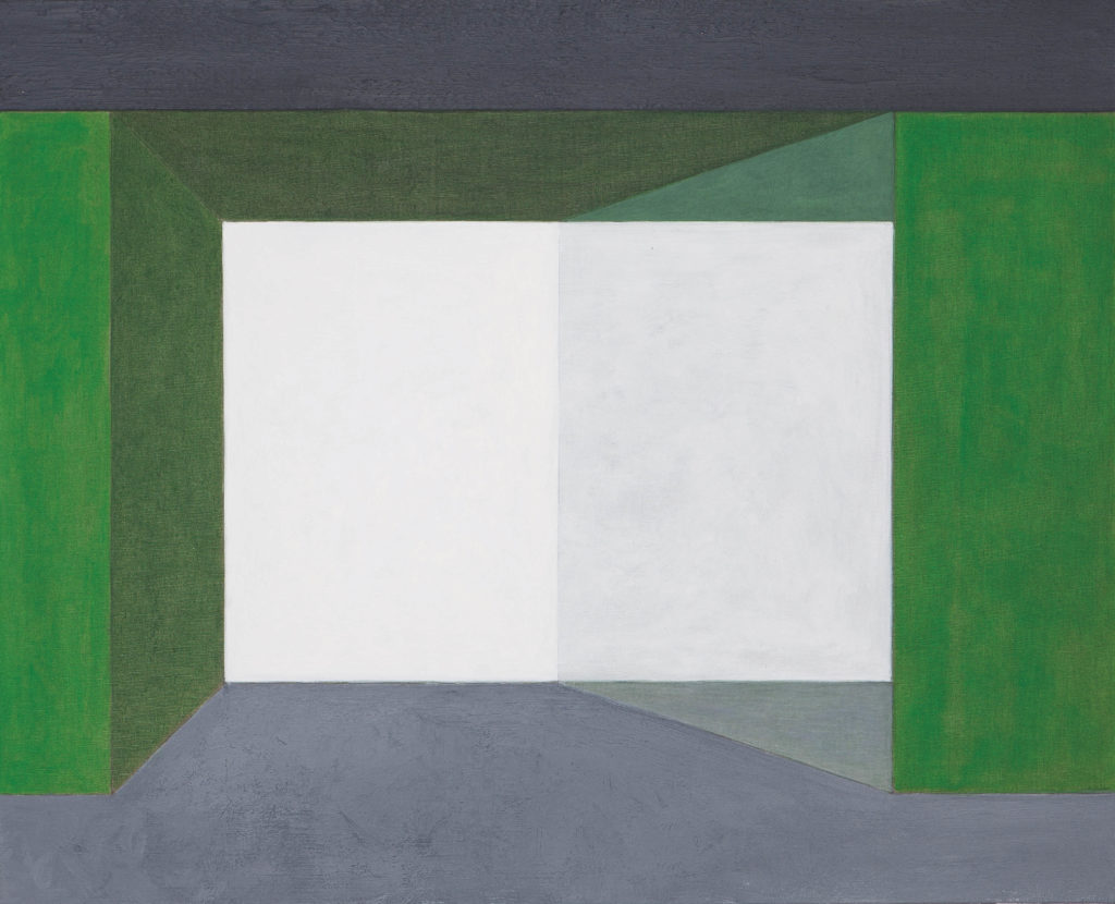 Gilles Elie, Galerie verte 5, 2015, acrylique sur toile de lin, 81 x 100 cm.